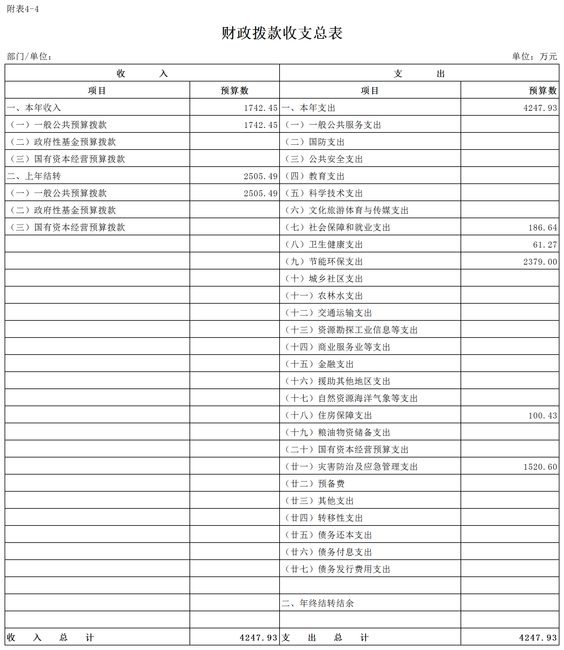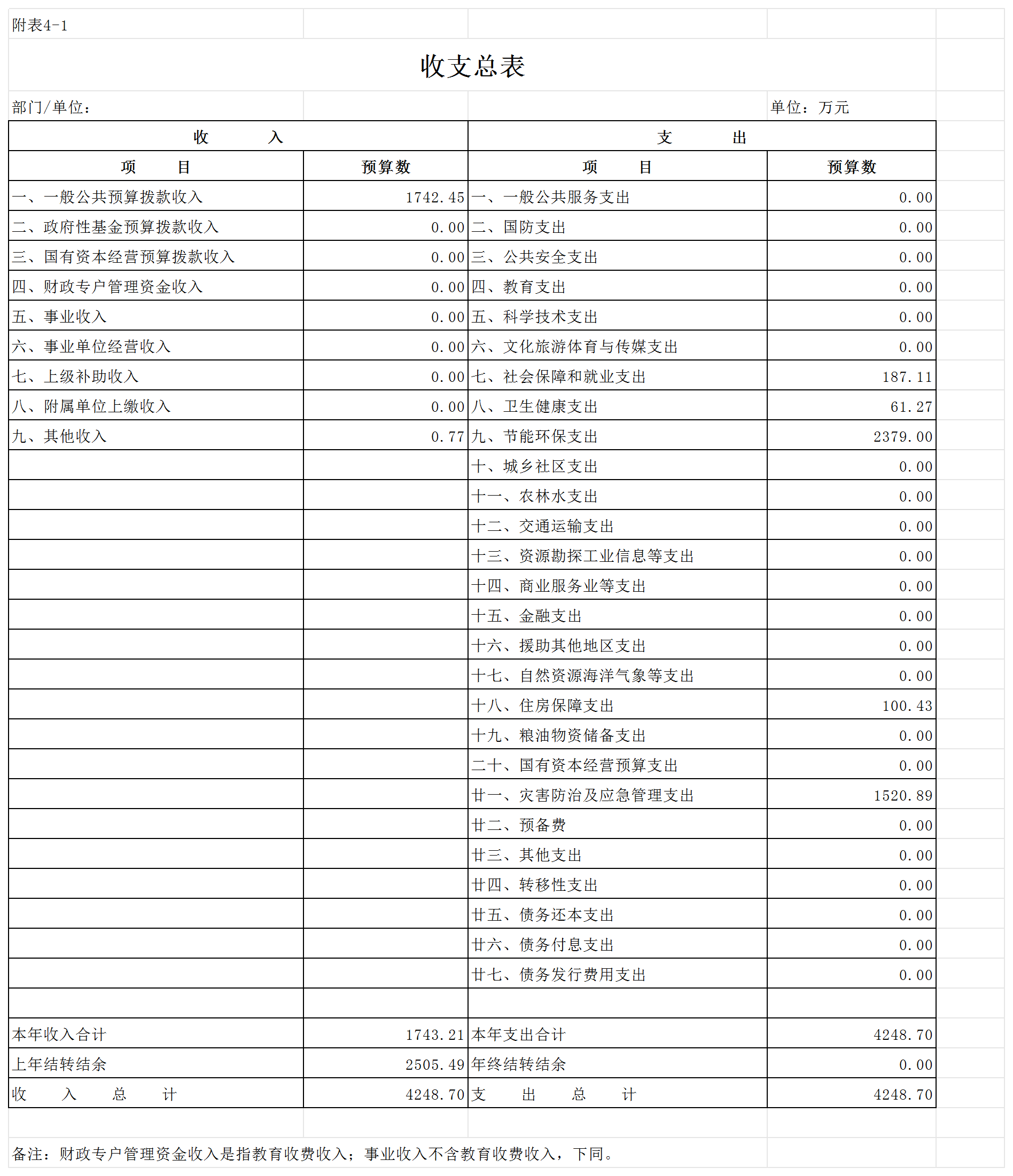 部门收支预算总表