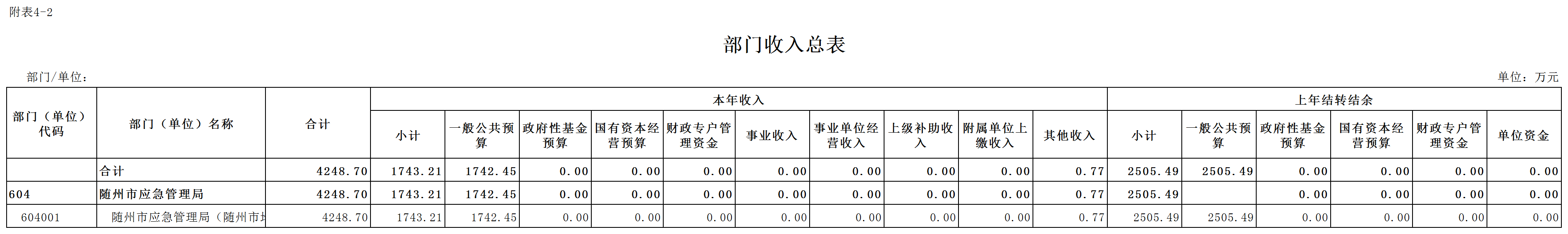 二、部门收入总表