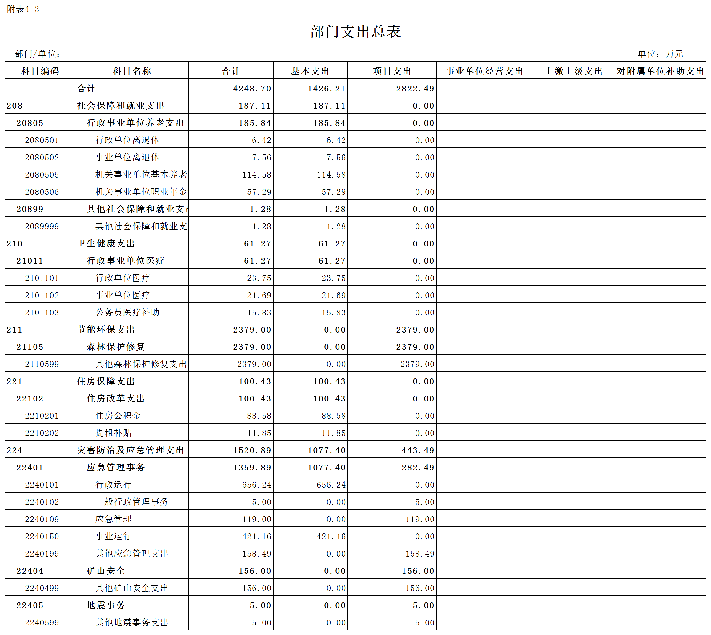 部门支出总表