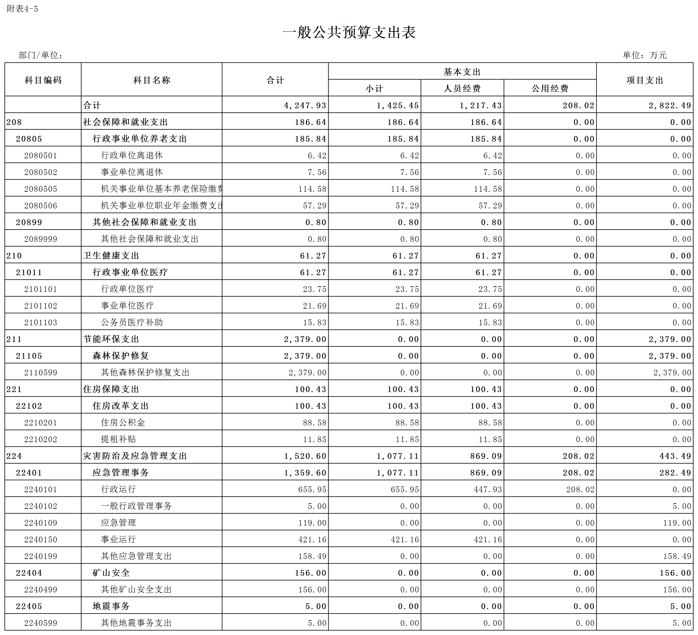 五、一般公共预算支出表
