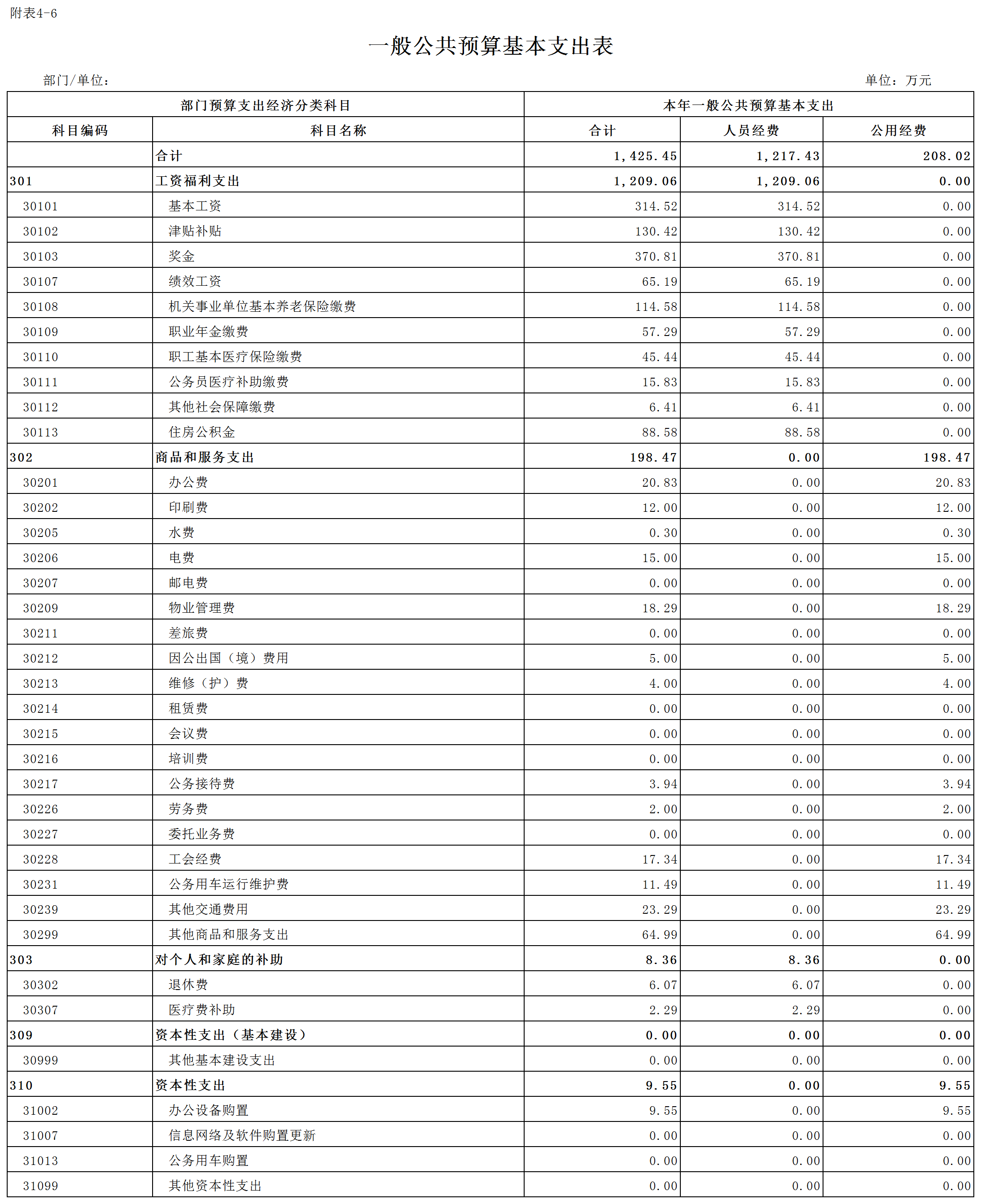 六、一般公共预算基本支出表