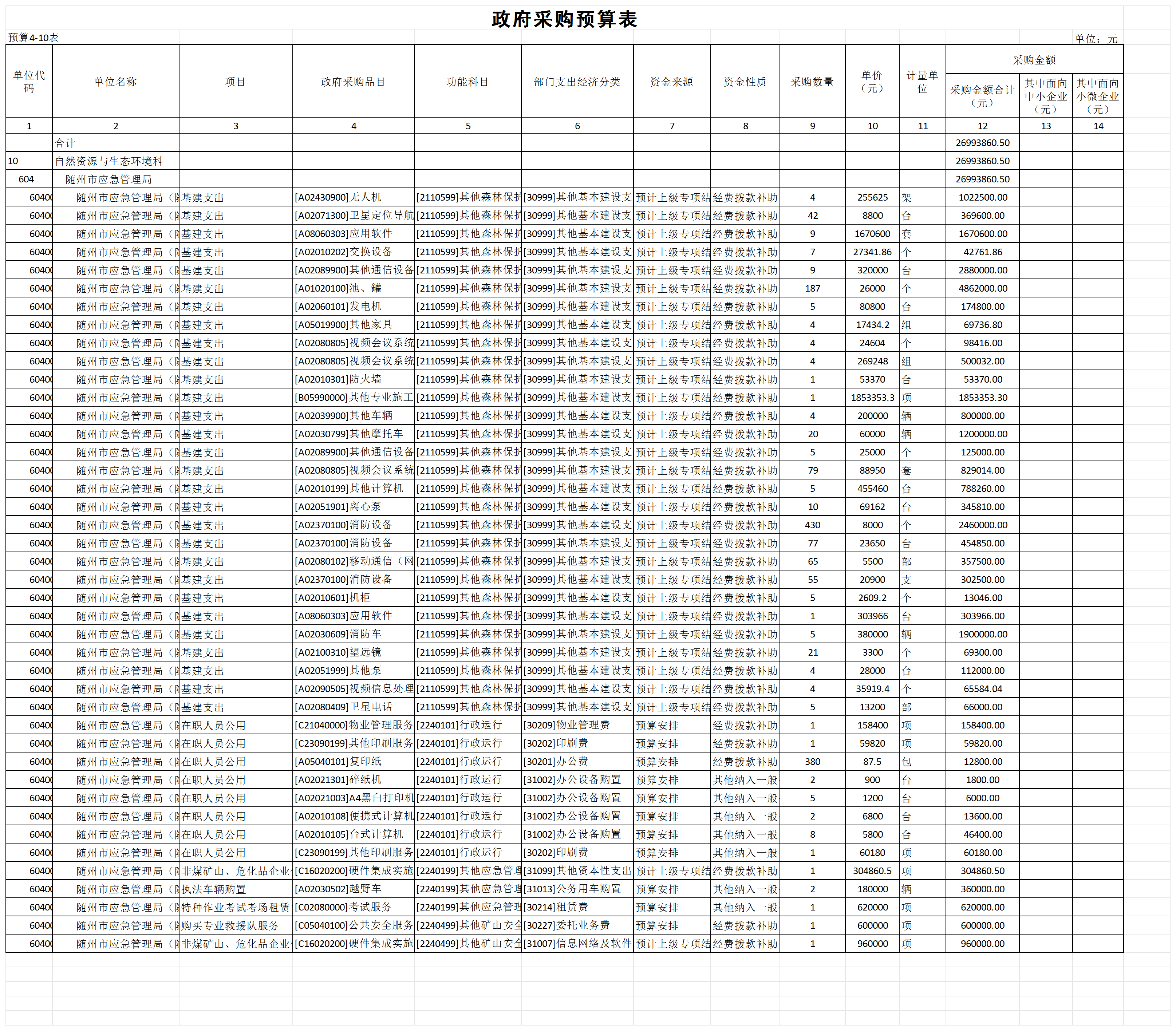 十、政府采购预算表